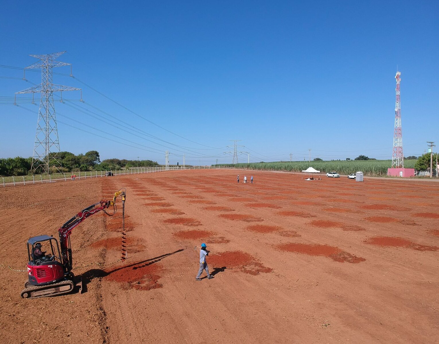 A SAZOLO Soluções em Terraplanagem utiliza máquinas específicas para perfuração e remoção de material, mantendo controle técnico em todas as etapas e garantindo que cada furo seja executado com alinhamento, estabilidade e acabamento uniforme.